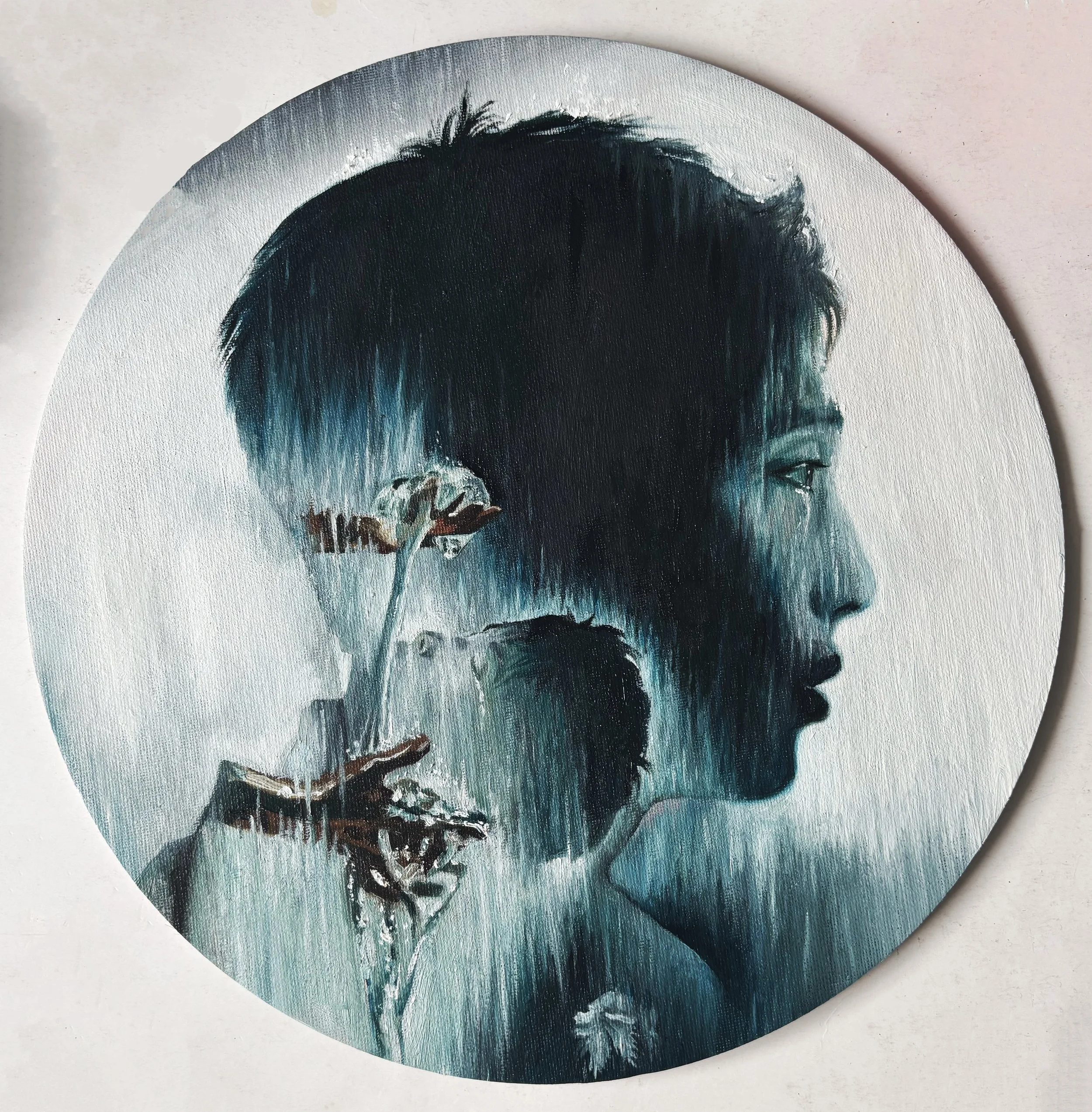 Oil on canvas board, 30cm diameter