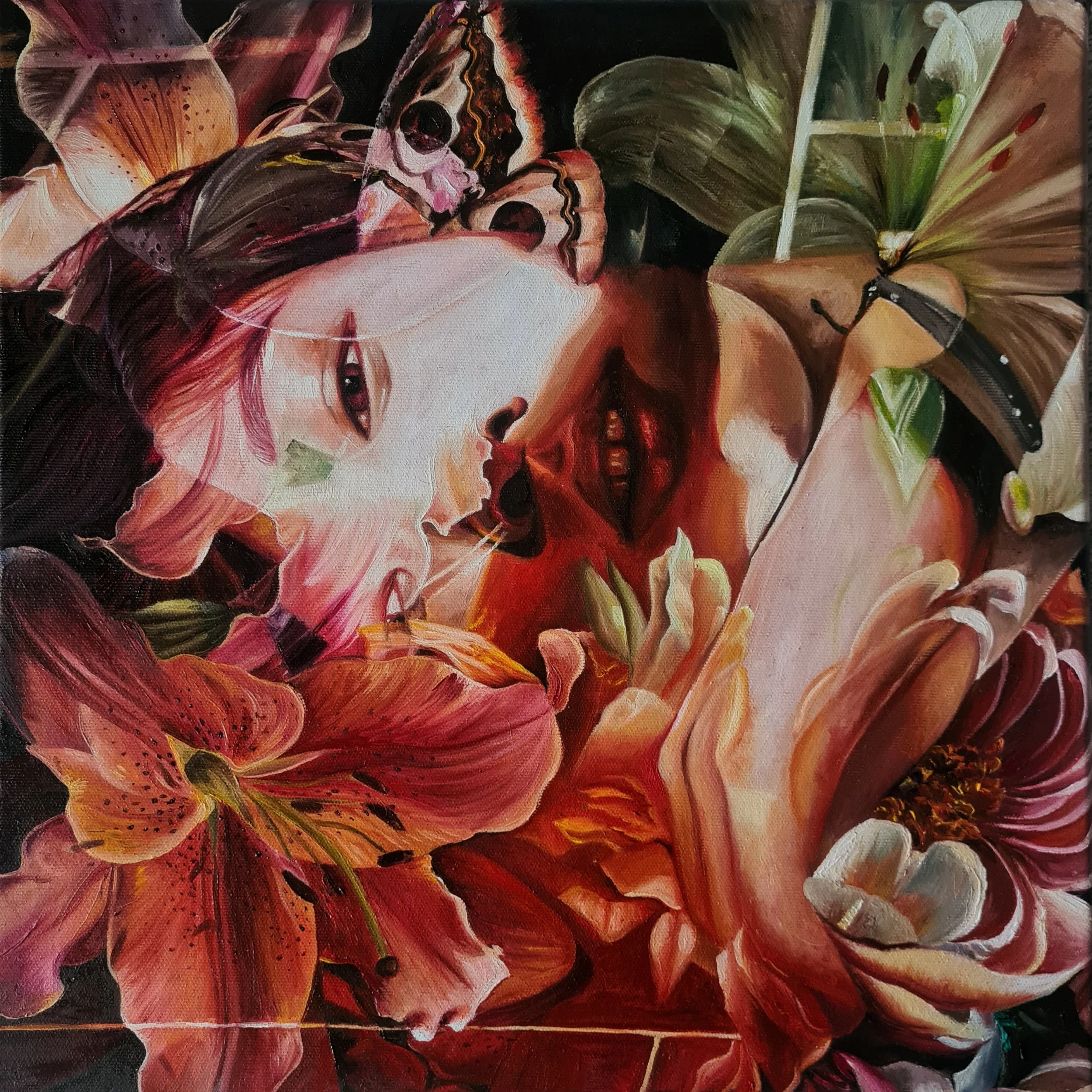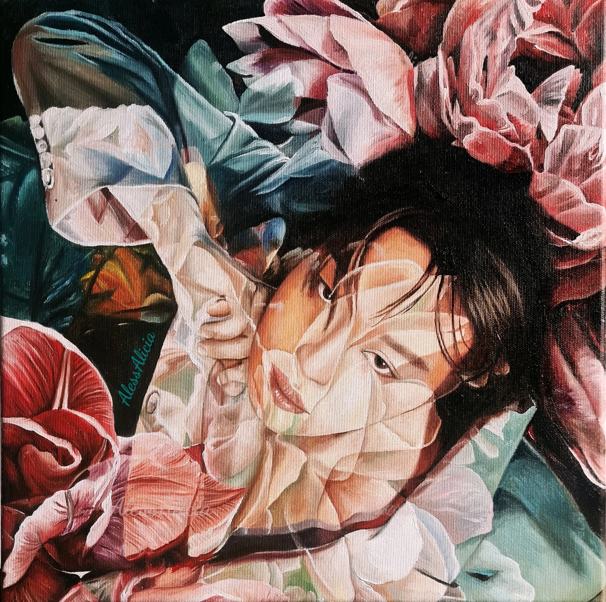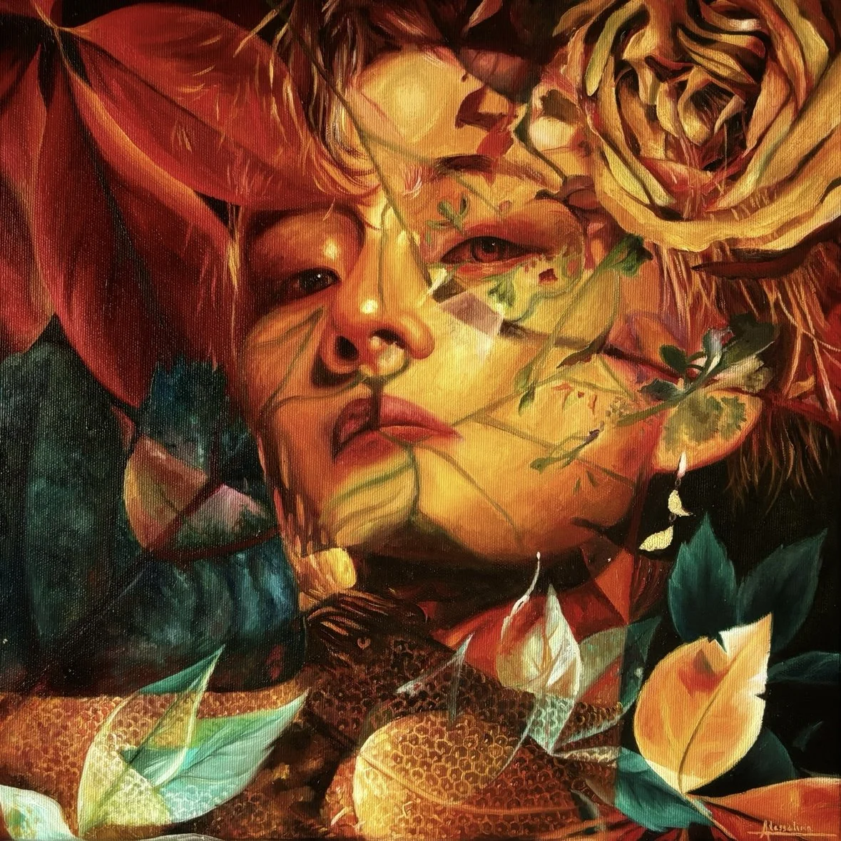 The flowers in my paintings are more than just a beautiful addition to the portrait - they are silent storytellers. Each bloom is chosen with intention, layered with symbolism that adds emotional depth and narrative to the work. They whisper of themes like resilience, memory, love, or loss, offering a second language through color and form. While their outward beauty catches the eye, their true purpose is to echo the hidden layers of the subject’s identity and experience. In this way, the flowers become both an aesthetic element and a vessel for meaning, enriching the portrait beyond what words alone could express.